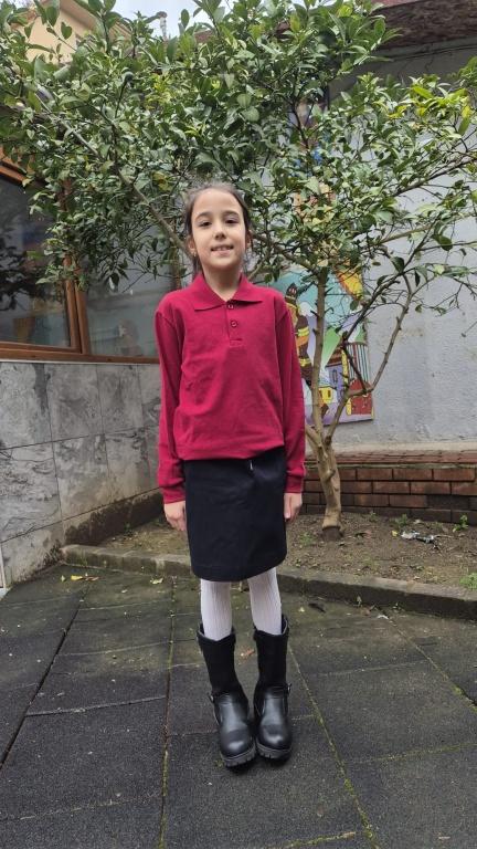 Kız öğrenciler ; bordo polo yaka kısa yada uzun kollu tişört, lacivert pantolon ya da şort etek, pantolon renginde düğmeli lacivert hırka, beyaz ya da lacivert çorap.